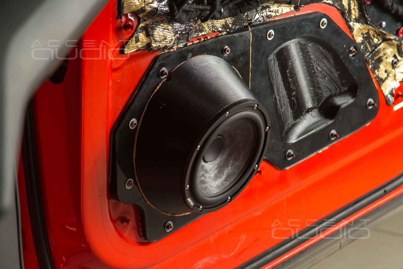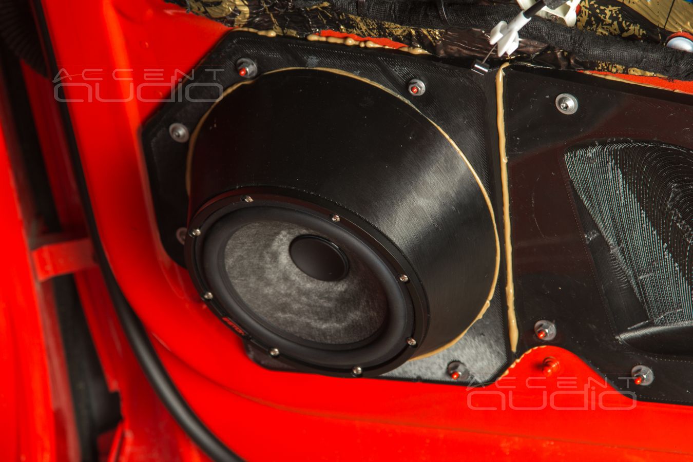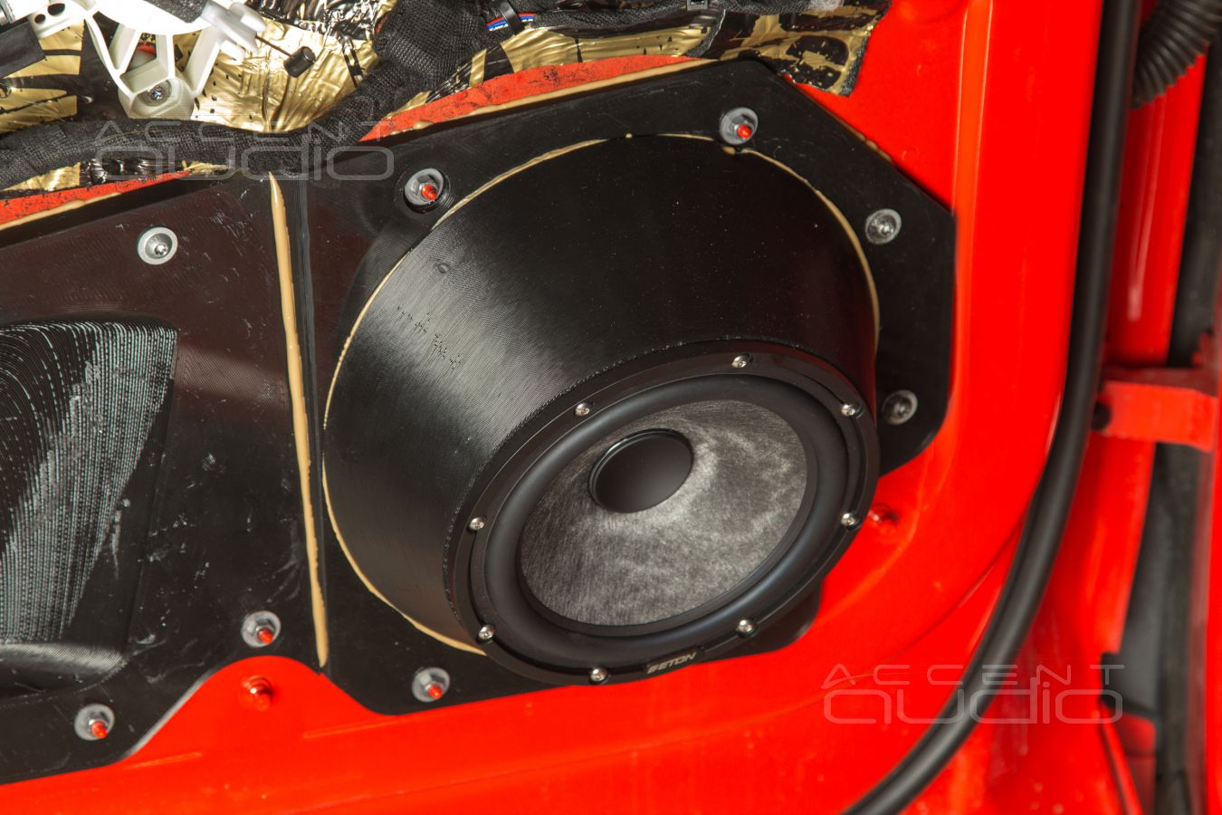 Чтобы ПРОСТО установить новый мидбас в двери Audi E-Tron нужно выполнить полное 3D сканирование двери, затем два дня рисовать модели, затем двое суток печатать полностью заполняемые пластиком детали, которых нужно на каждую дверь по три штуки. Затем каждая деталь вклеивается на клей Титан и притягивается болтами под гайку.