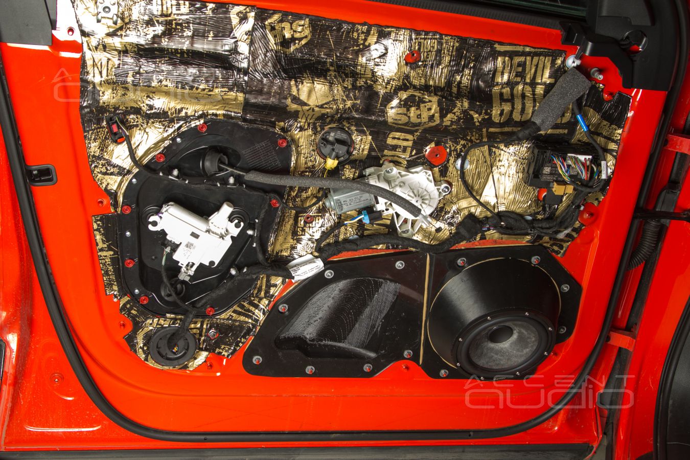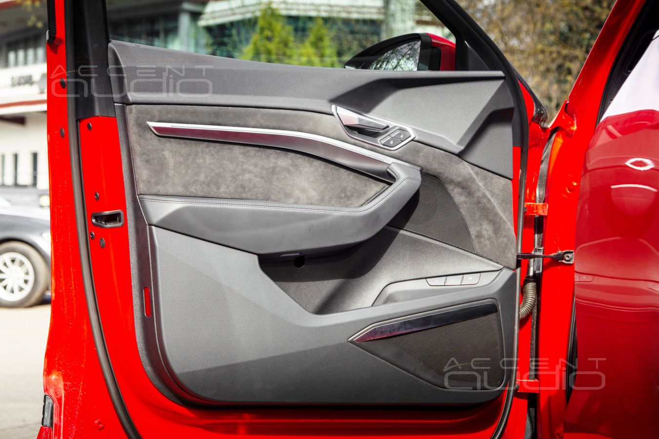 Некоторые трудности возникли с самого начала работы с великолепно-красным E-Tron. Точнее даже не с самим автомобилем, а с техническим заданием. Заказчик позвонил, приехал, первым делом послушал наш демонстрационный Audi Q8 и немедленно заявил: - мне вот прям так-же, но всё по штатным местам, визуально ничего не менять. Вникать в технику не буду, хочу результат внутри моего бюджета. Вот машина – работайте.