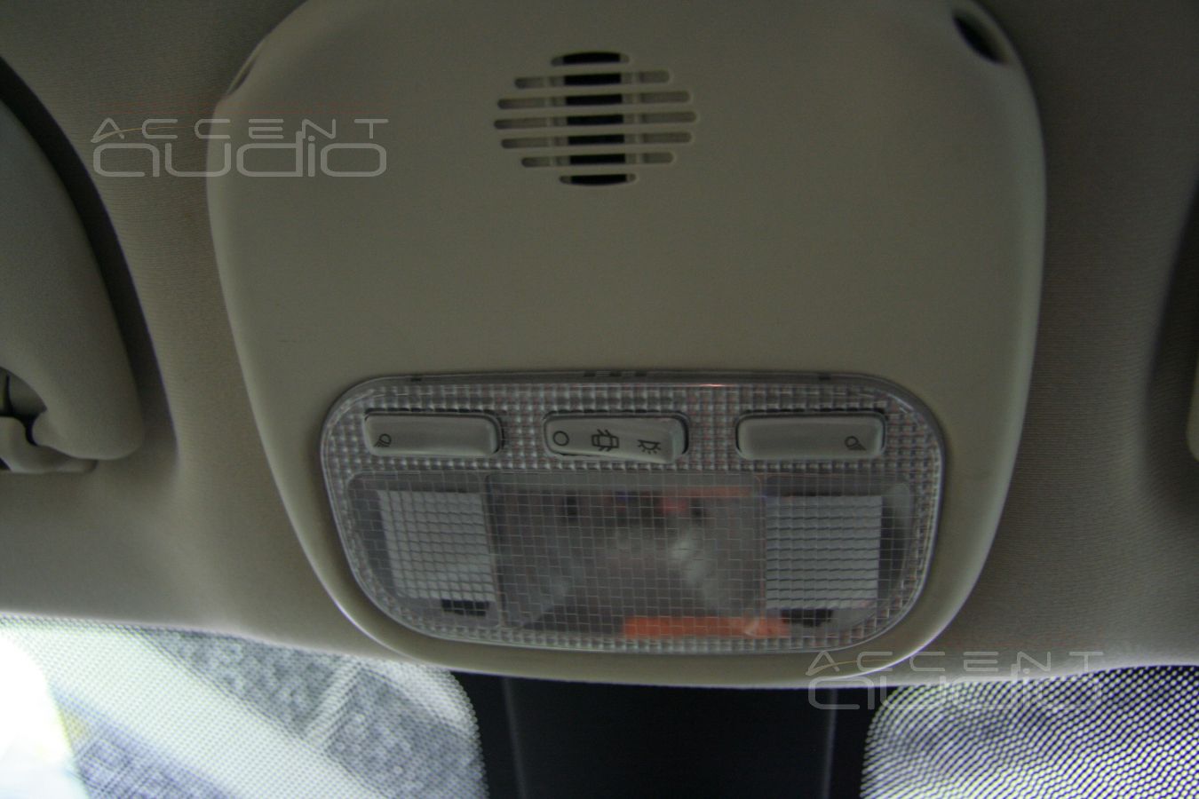 Добавляем адаптер Bluetooth Alpine KCE-400BT, который дополнит французские изыски необходимым современным функционалом. Небольшая пластиковая панель на потолке, в которой расположены плафоны освещения и датчики объема, уже имеет место для штатного микрофона HandsFree и оно как нельзя лучше подходит для установки микрофончика из комплекта Alpine.