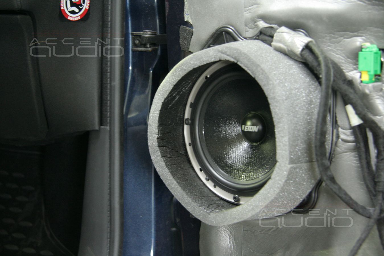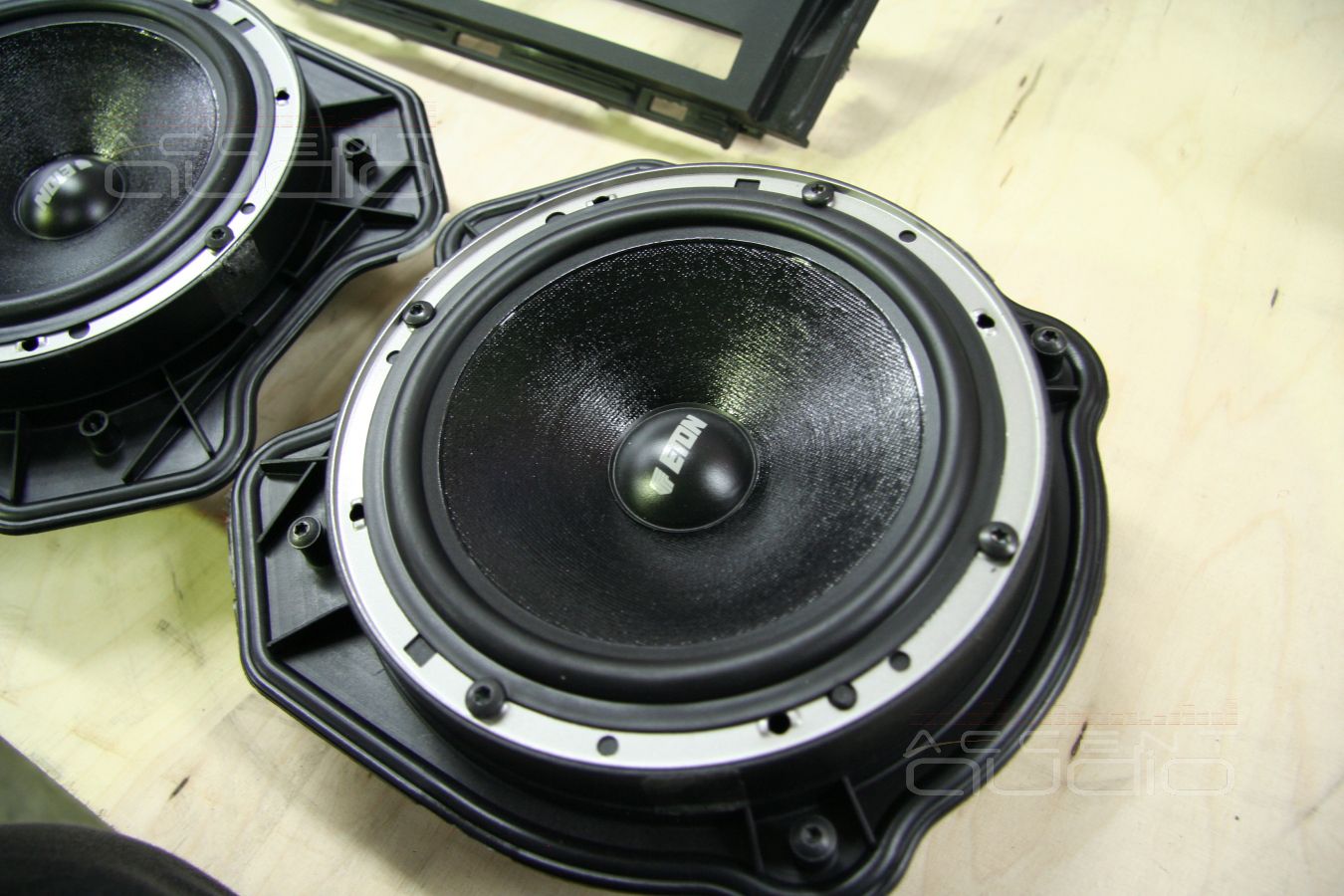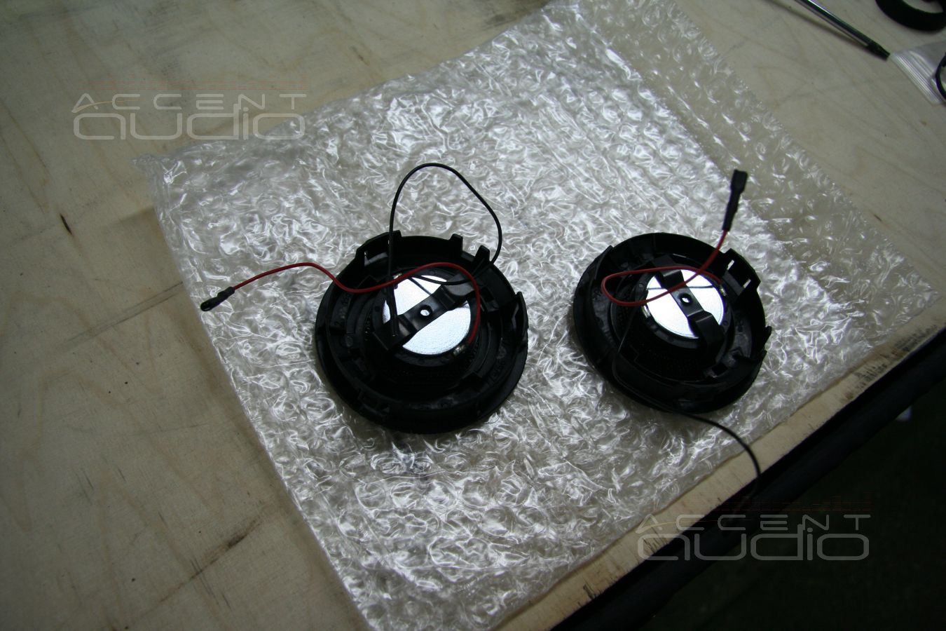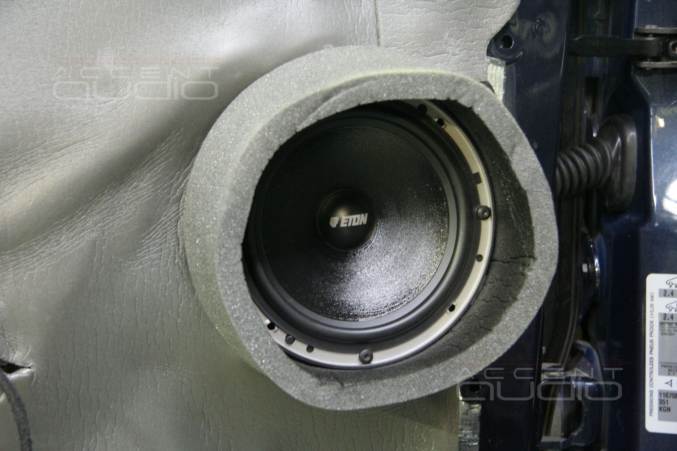 В штатные места устанавливаем немецкий комплект Eton PRO 170. Твитеры размещены в штатных местах, под стеклом, и работают на отражение, а так как у нас поканальное усиление и широчайшие возможности настройки, то кроме отменной глубины сцены, мы можем получить более чем пристойный звук.