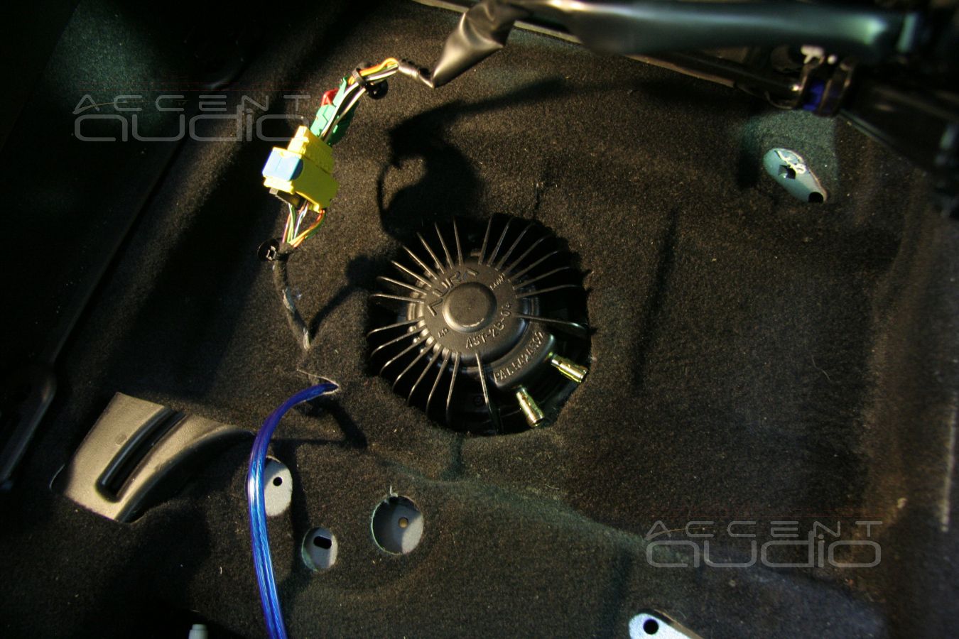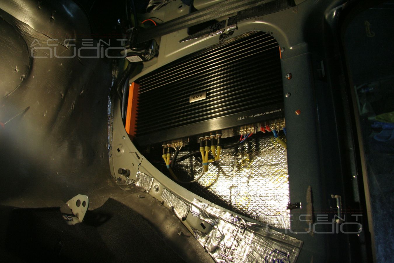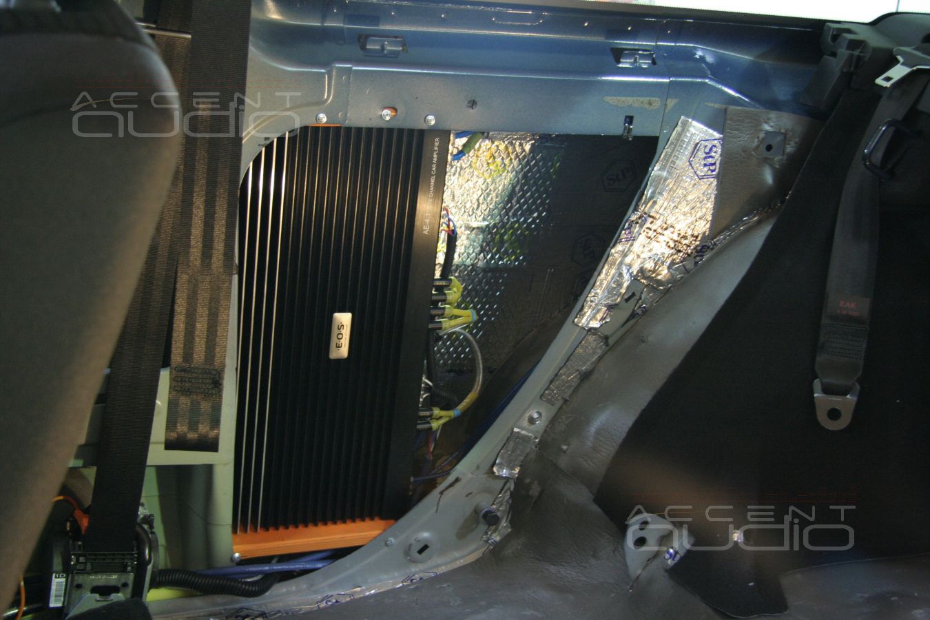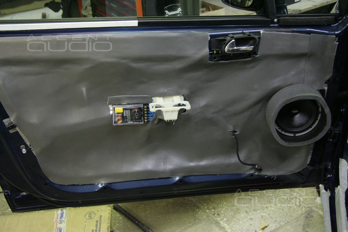 В штатные места устанавливаем немецкий комплект Eton PRO 170. Твитеры размещены в штатных местах, под стеклом, и работают на отражение, а так как у нас поканальное усиление и широчайшие возможности настройки, то кроме отменной глубины сцены, мы можем получить более чем пристойный звук.