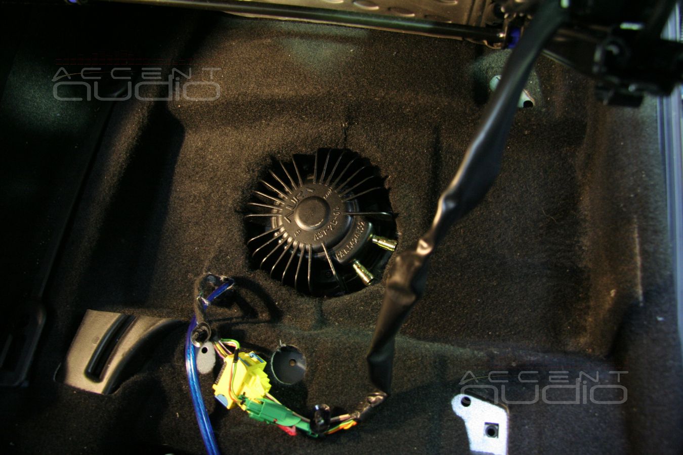 Как Вы думаете, зачем в дверях, рядом с мидбасами, расположены пищалки от volkswagen passat ? Нет, они не звучат и вообще обычно молчат, т.к. нужны они как раз для работы парктроника. Дело в том, что Alpine CDA-9887R в режиме поканального усиления отключает все каналы встроенного усилителя, и чтобы сохранить оригинальный функционал парктроника, нам нужно еще 4 динамика по периметру машины. Тыловые мы оставили штатными, а фронтальные нашли свое место вот в таком неожиданном месте. Самое приятное, что дял этих целей мы использовали штатную проводку, что имеет определенную техническую эстетику.