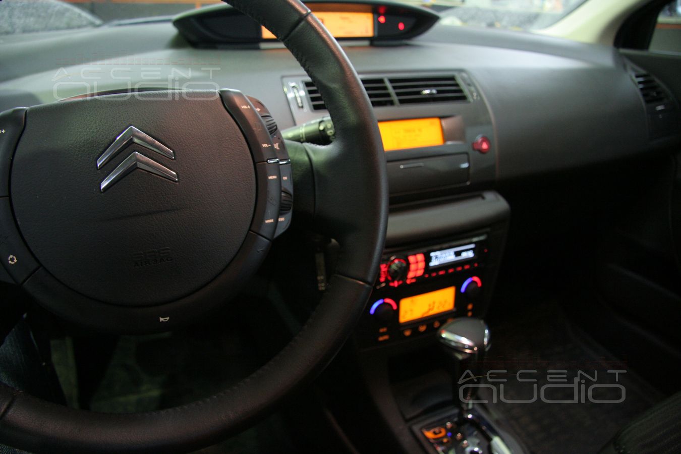 Переходим к изысканным приправам и кулинарным приемам. В соответствии с рецептом, нам нужно построить в машине приличную аудиосистему, не нарушив интерьер и самое главное сохранить "родной гламур", а именно: у Citroen C4 потрясающий руль, на котором естественно есть кнопки управления бортовым компьютером и штатной магнитолой, штатный парктроник не только отображает расстояния до препятствий на экранчике, но и ПИЩИТ ВО ВСЕ ДИНАМИКИ АУДИОСИСТЕМЫ, конечно же в соответствии с расположением препятствия. В свою очередь, вся информация о треках и радиостанциях отображается на экране кмпьютера, т.к. у самой магнитолы нет экрана.