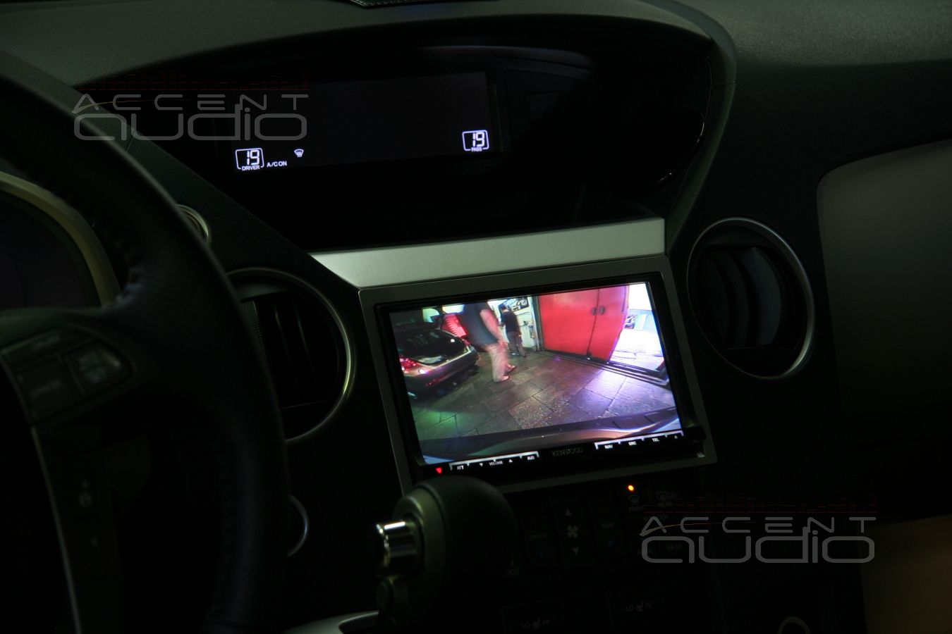 - Штатная камера заднего вида теперь работает на два экрана: штатный экранчик в зеркале и большой экран Kenwood.
