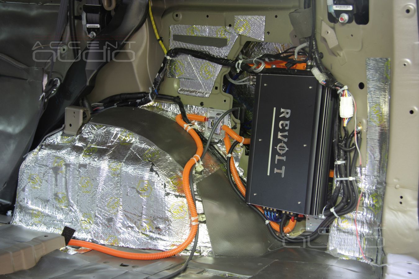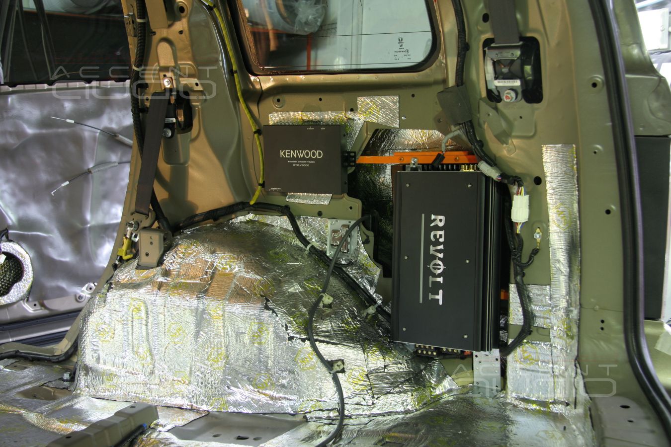 Оригинальная технология изготовления сабвуфера, мониторы в подголовниках, эксклюзивная врезка новой магнитолы, скрытая интеграция усилителей, полная шумоизоляция - все очень подробно.