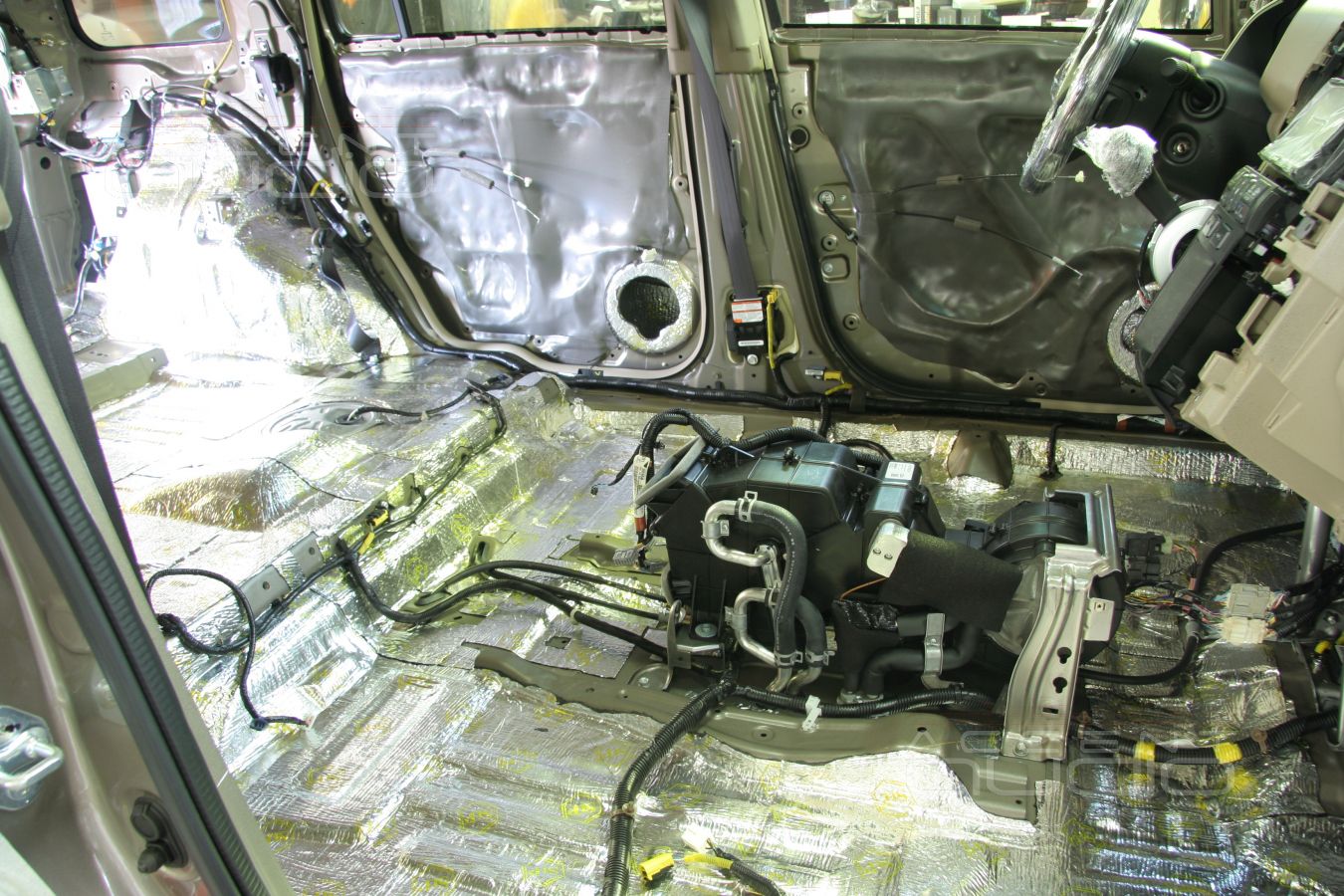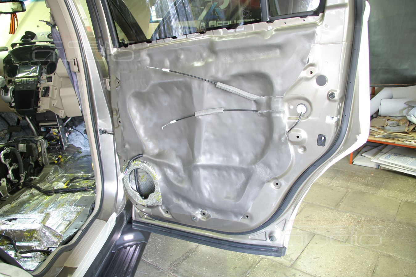 Далее коротко некоторые рутинные операции: полная шумоизоляция автомобиля в 3 слоя материалами Standartplast Gold и Сплен, прокладка новой акустической и силовой проводки, изготовление проставочных колец и подиумов, установка акустики.