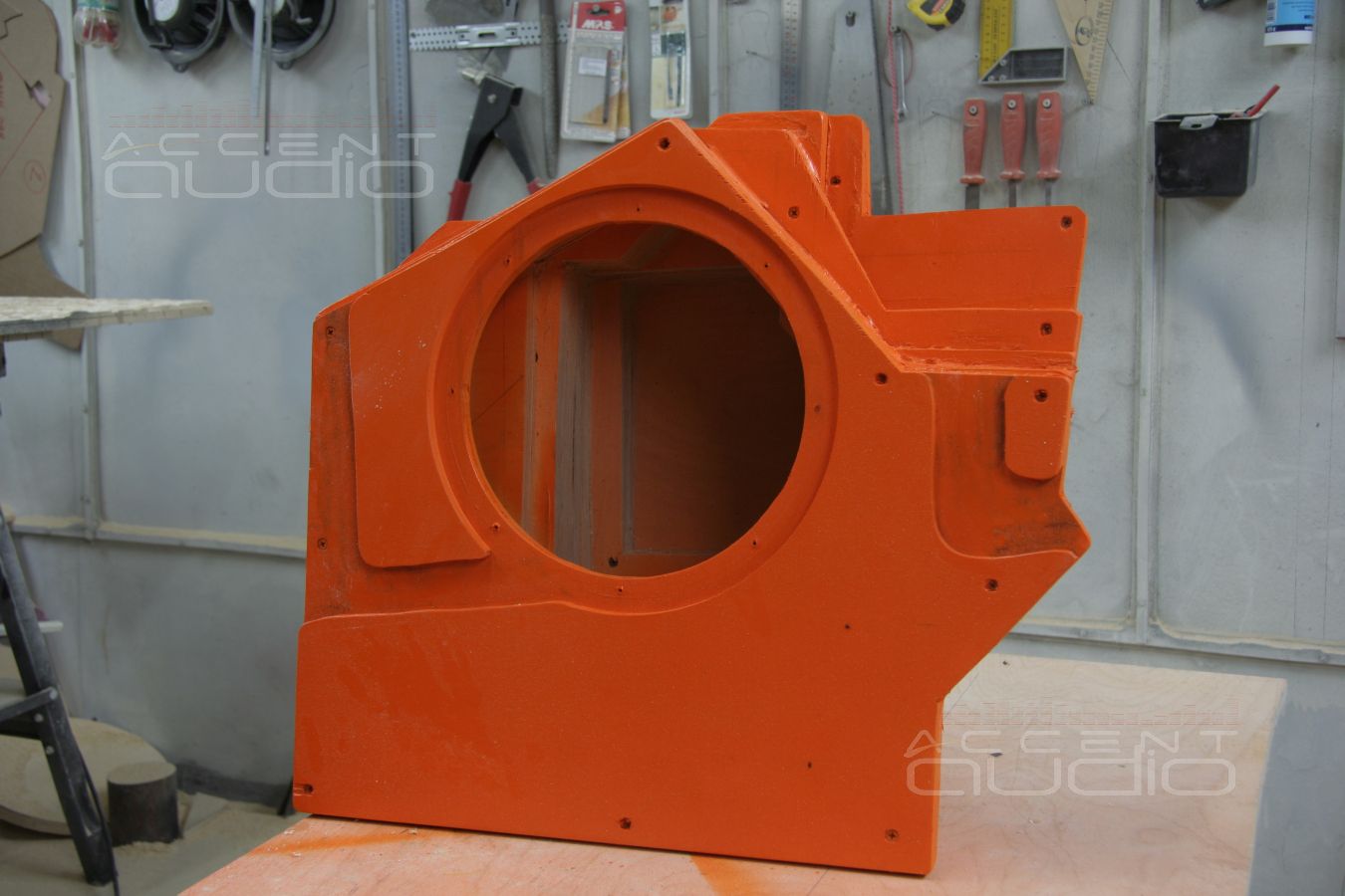 Чтобы сабвуфер не играл под обшивку, мы не только изготовили вместо пластиковой дверцы звукопрозрачную панель, но и создали тоннель между сабвуферной головкой и пластиковой панелью.