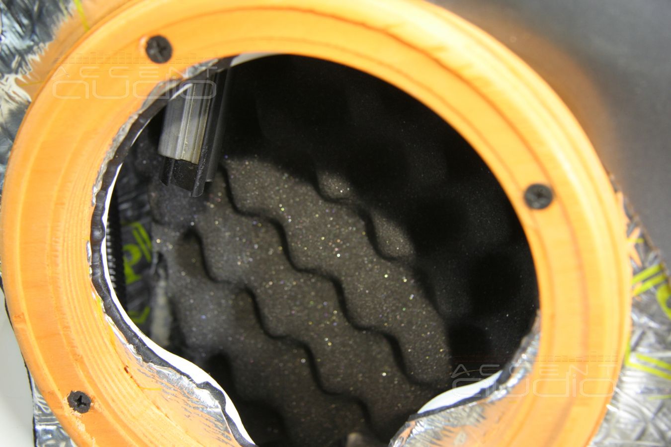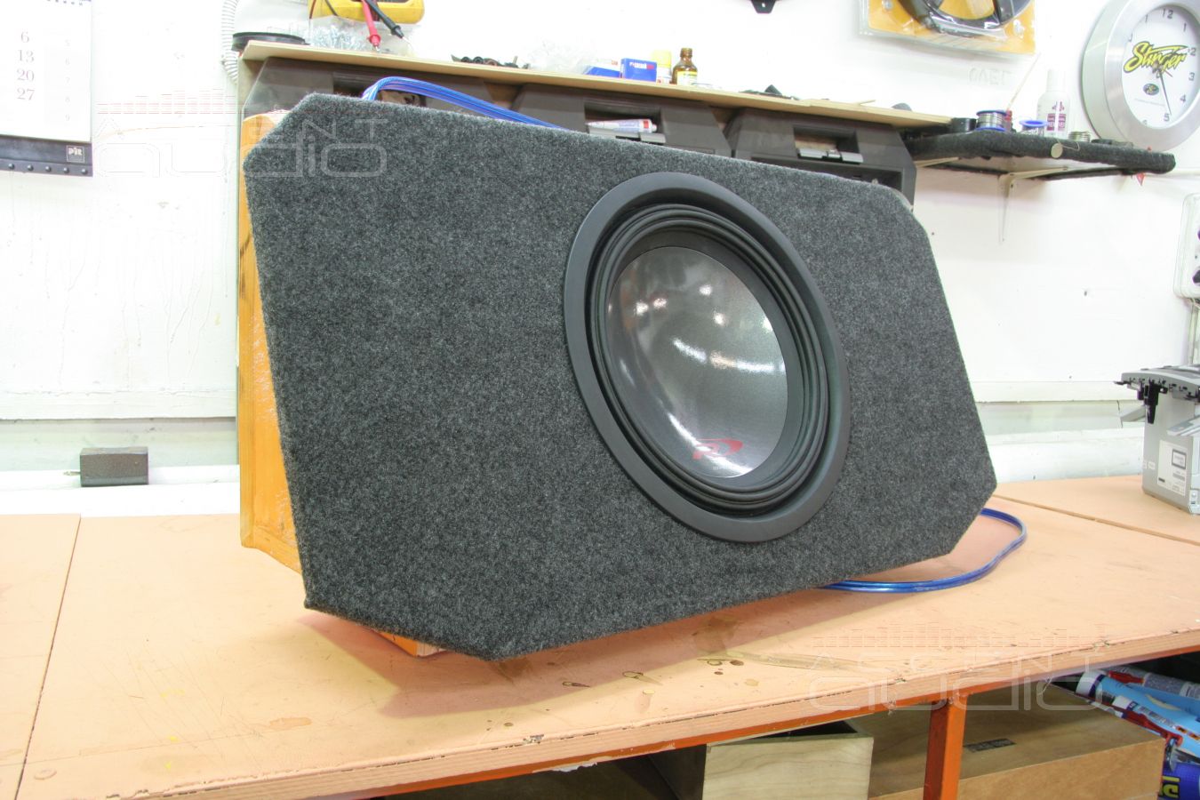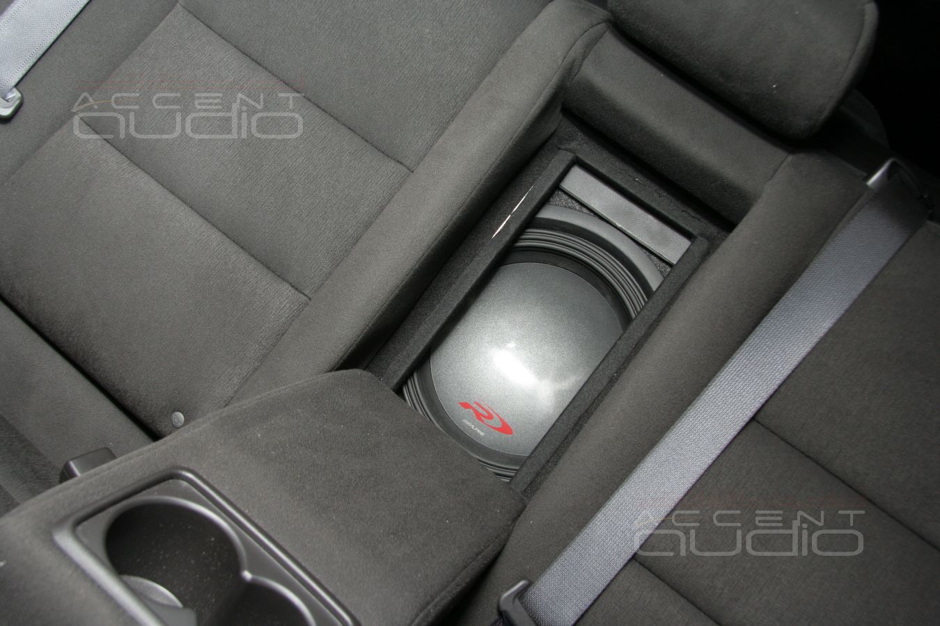 - Сабвуфер: Alpine SWR-1223D в закрытом ящике, диффузор смотрит в салон
