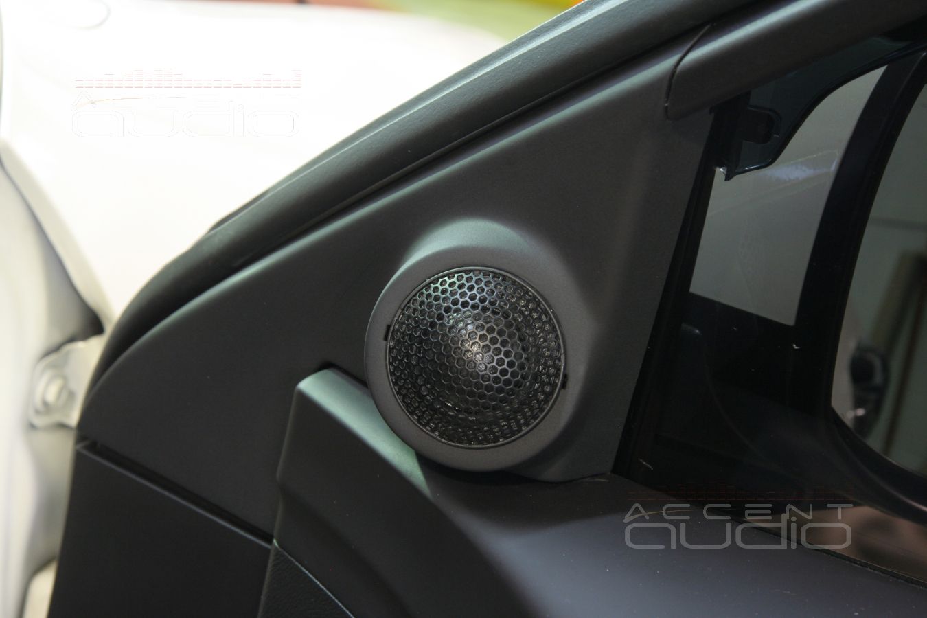 В белой Хонде по пожеланию заказчика установлена тыловая акустика Challenger TAS6.