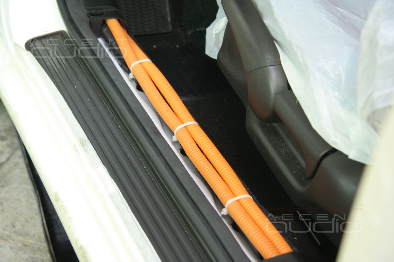 Владелец черного Honda Accord тоже уже истратил 120 000р на "звук" в другой студии, где, как оказалось, взяли деньги, но не делали шумоизоляцию (предмет будущего судебного иска кстати сказать), а так же предложили и реализовали потрясающее по оригинальности и техническому совершенству решение на ШТАТНОЙ магнитоле с ОЧЕНЬ дорогостоящей акустикой и усилителями, которые в итоге играли ХУЖЕ, чем изначальная штатная аудиосистема просто по причине ошибочного подключения и безграмотной распайки штатной магнитолы.