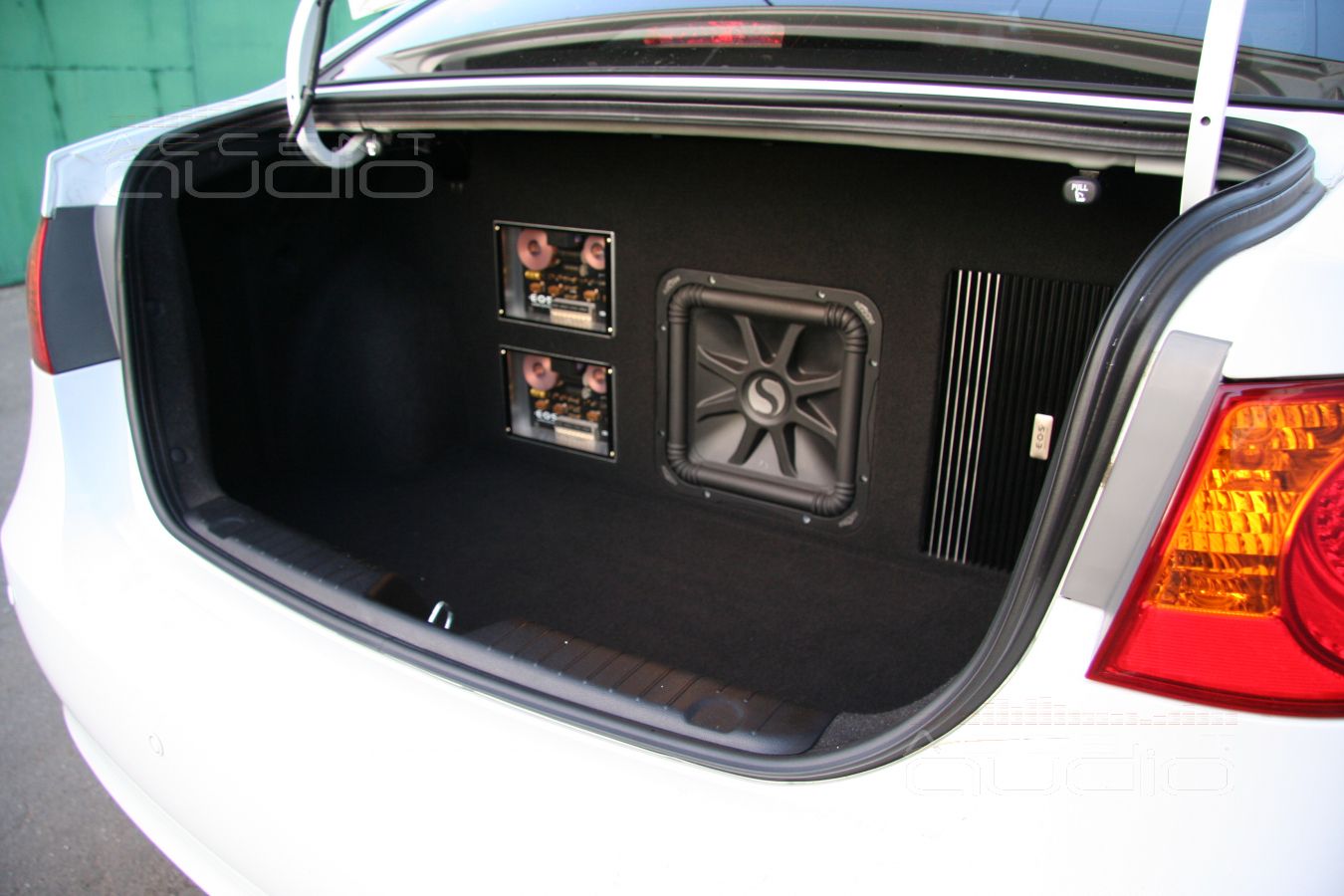 3 дня два мастера делали шумоизоляцию и клали проводку и 3 дня наш гений лобзика и шпаклевки изготавливал конструкцию в багажнике и подиумы под твитеры.