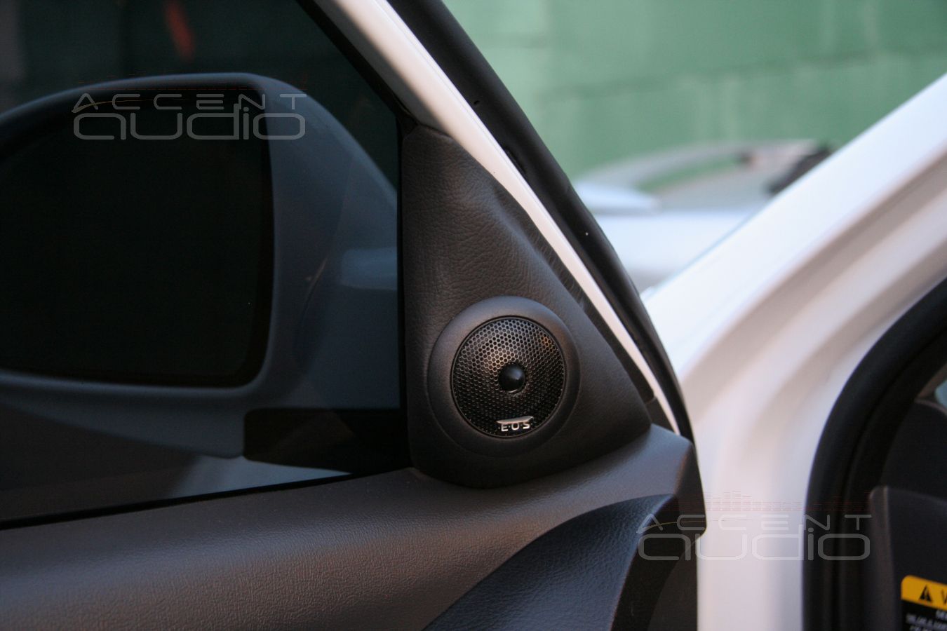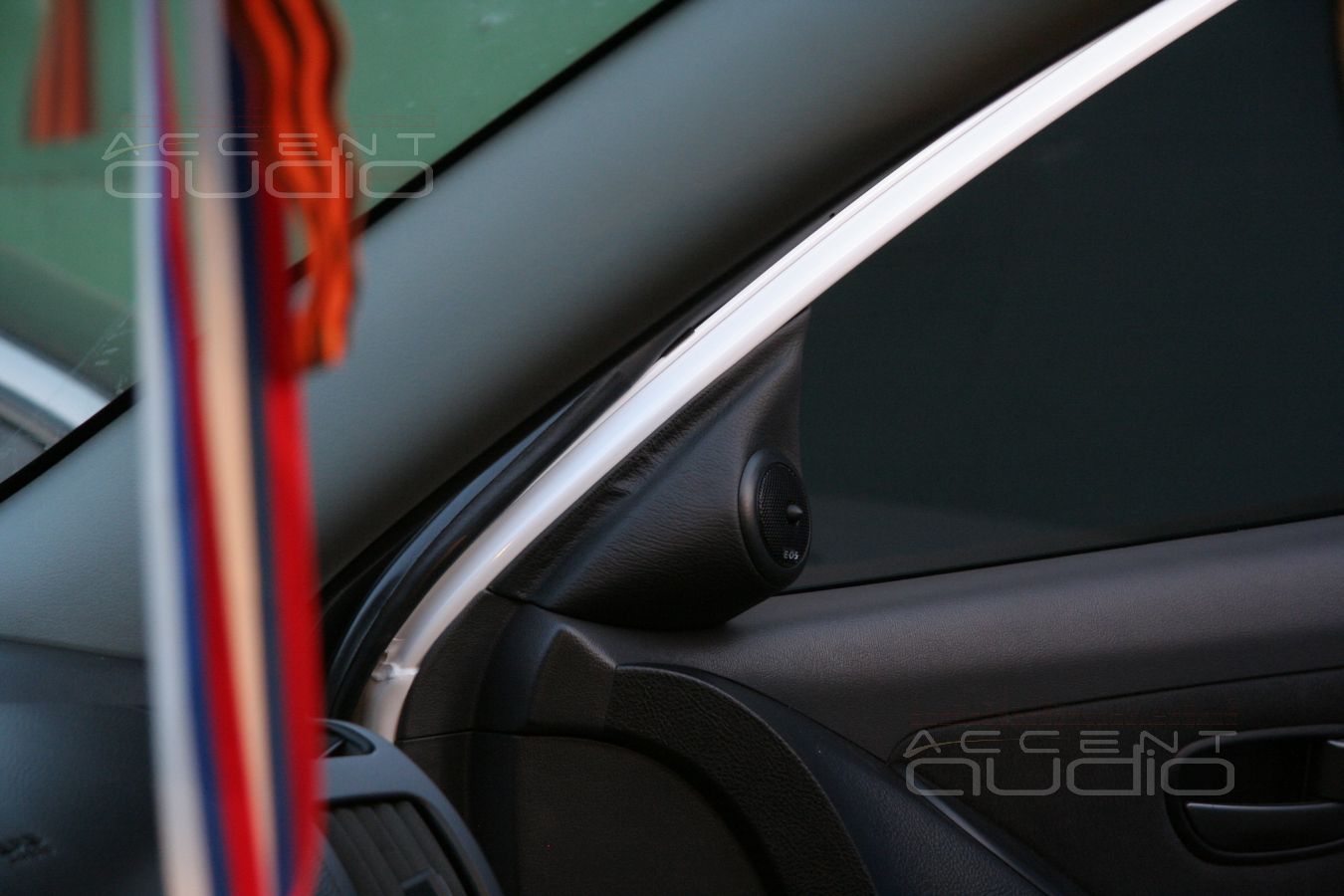 На сегодня мы можем представить только твитерные подиумы, т.к. магнитола после соревнований менялась дважды, а мидбасы мы все же умудрились установить в штатные места, сэкономив Виктору денег.