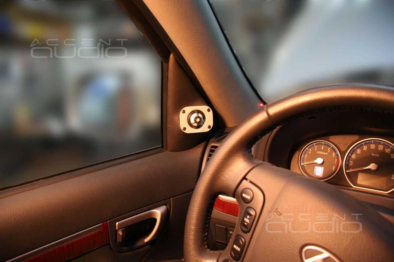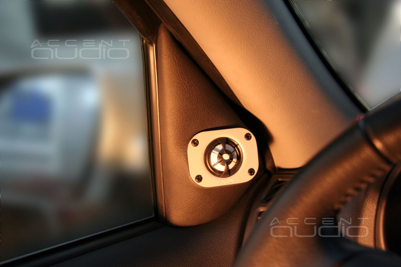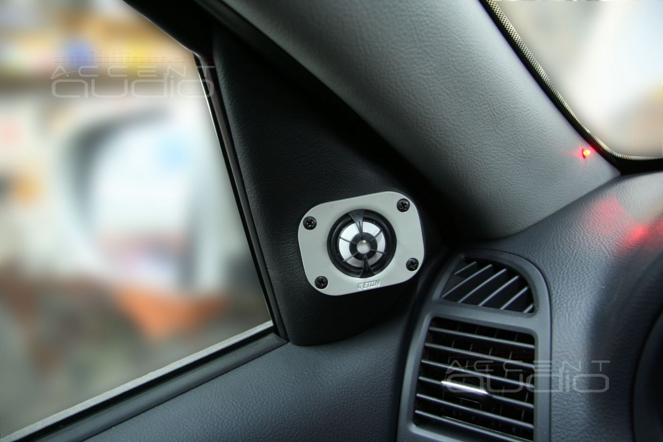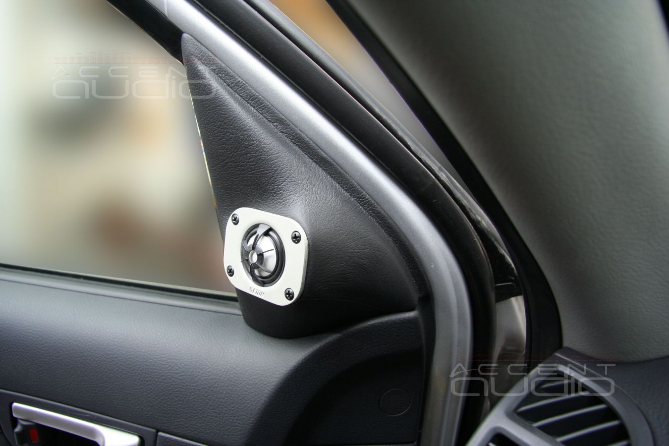 Предварительно выставляем уголы наклона и поворота твитера в треугольнике и приступаем к созданию подиумов. Затем все это затягивается в черную автомобильную кожу и мы имеем следуюший результат: