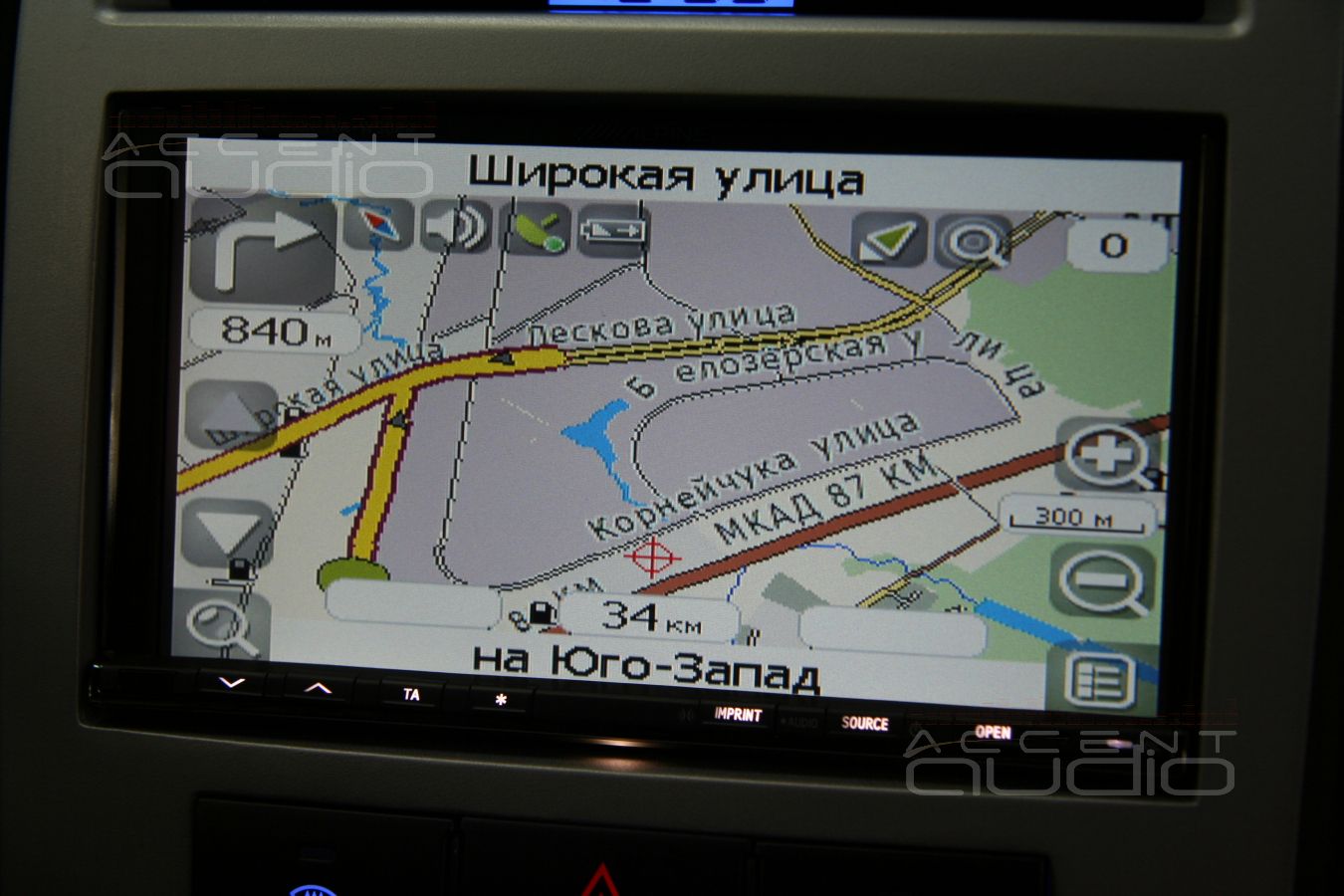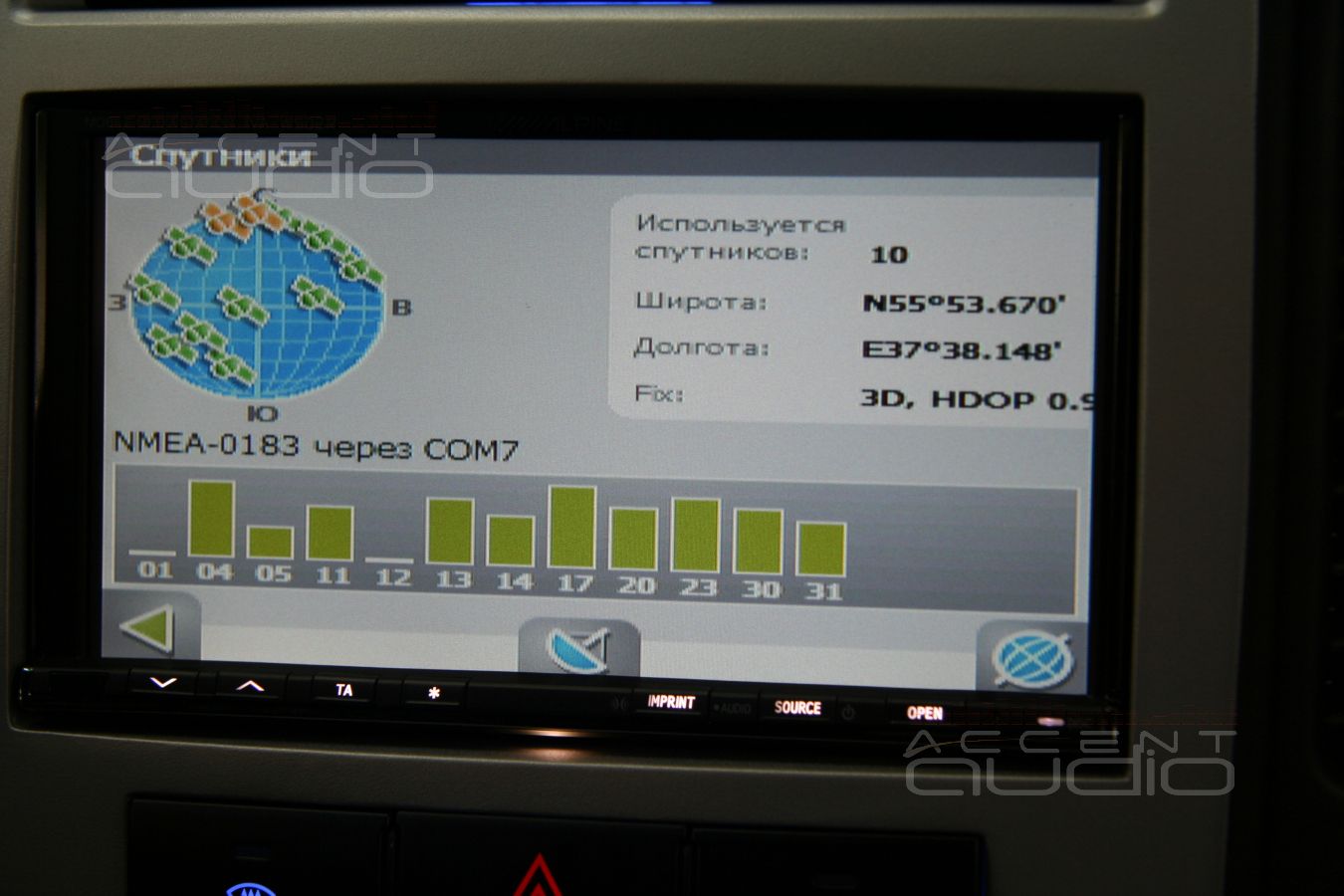 Подробные фотографии навигационного блока и его установки будут чуть позже, а пока проверяем навигацию. Честно вывешиваем GPS антену в багажник, учитываем тройную стальную крышу студии и имеем впечатляющий результат. Тут Вы можете получить представление о интерфейсе и возможности навигации, полностью построенной на устройствах Alpine.