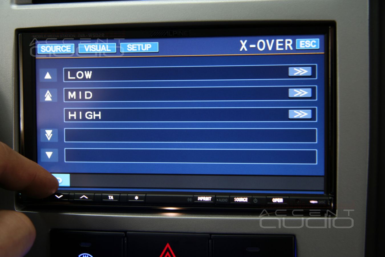 В качестве головного устройства мы выбрали Alpine IVA-W502R. Искушенные слушатели сразу скажут: 2-дин dvd-ресиверы не играют так, как хотелось бы и не обладают большиством функций, позволяющих максимально раскрыть потенциал системы. Именно поэтому к этому головному устройству мы приобрели внешний процессор Alpine PXA-H100, который позволяет W502R использовать весь возможный функционал, доступный счастливым обладателям флагманского процессорного ресивера CDA-9887R