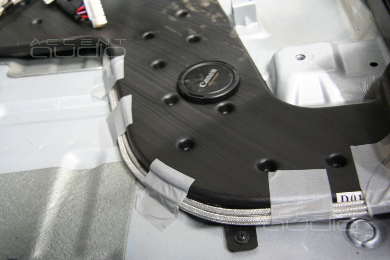 Собираем раму, протягиваем и крепим акустическую проводку в дверях.