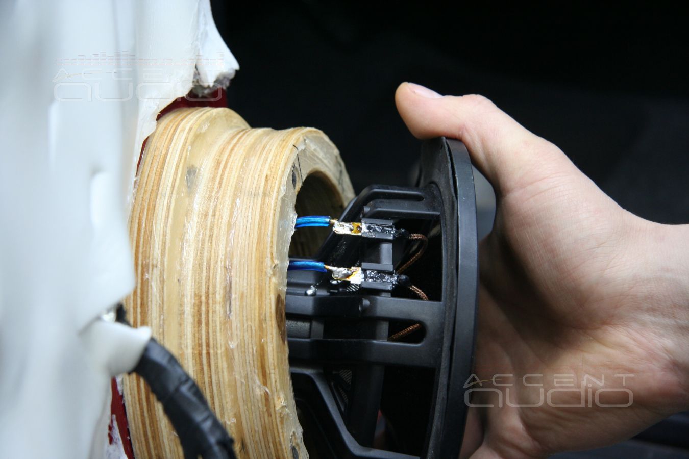 Далее коротко о технологиях: мы решили не выкладывать одинаковые фото о том, как проложены и закреплены провода, зашумоизолированы двери и т.п. стандартных процессов, фотографии котрых присутствуют в каждом фотоотчете. А вот установка мидбасов и конструкция в багажнике будут удостоены внимания, т.к. это имеет прямое отношение к звучанию системы.