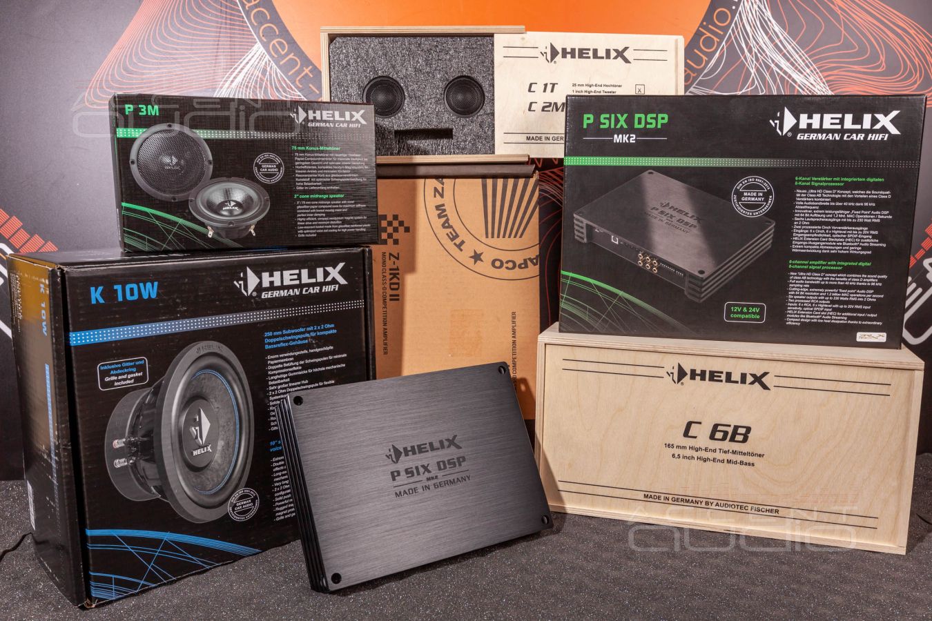 - Helix С6B – это мидбас, который сам производитель рекомендует для поканальных процессорных систем, однако именно эти мидбасы входят в комплект Helix C 63C Competition, цена на который доходит до 70 000р. Немцы как бы намекают: не готов платить слишком много – купи отдельные компоненты и получи звук лучше за меньшие деньги. Именно этим мы и пользуемся в угоду нашему клиенту.