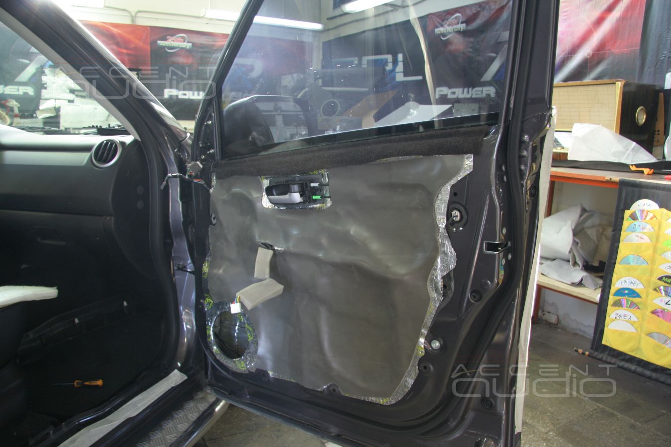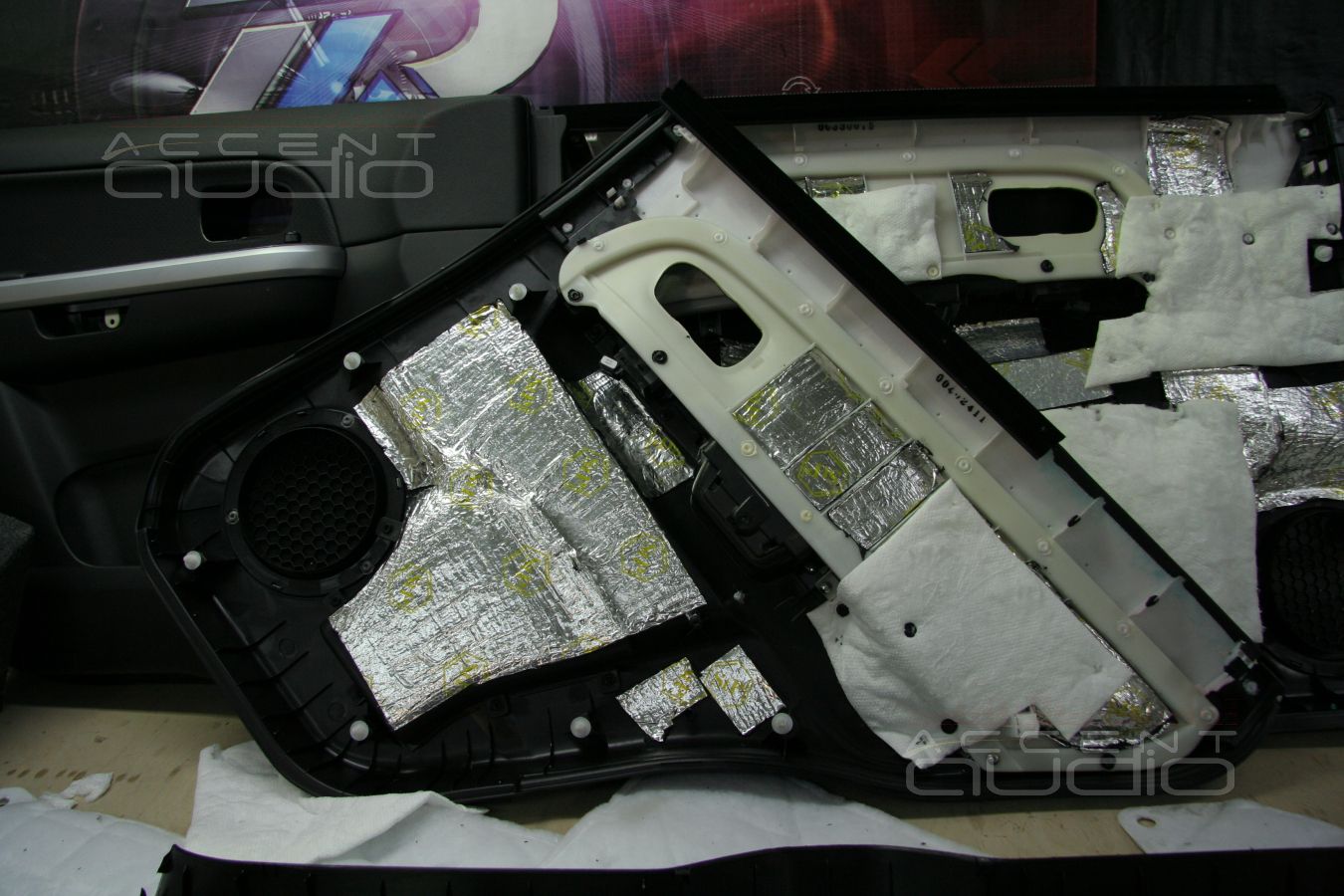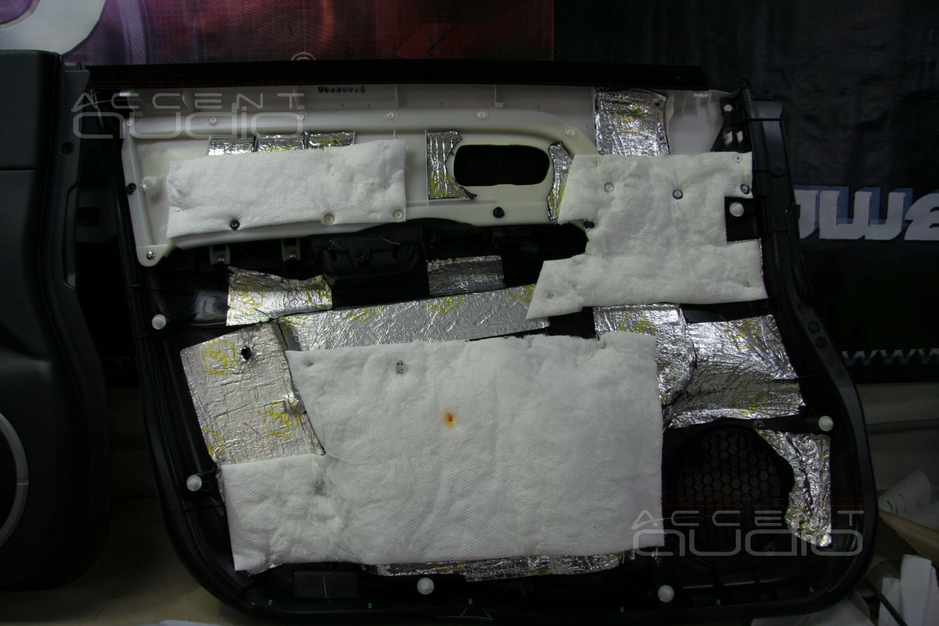 1. Шумоизоляция дверей сделана в 5 слоев: Вибропласт Gold - Визомат - Вибропласт Gold - Сплен 3004 - Вибропласт Gold на обшивках