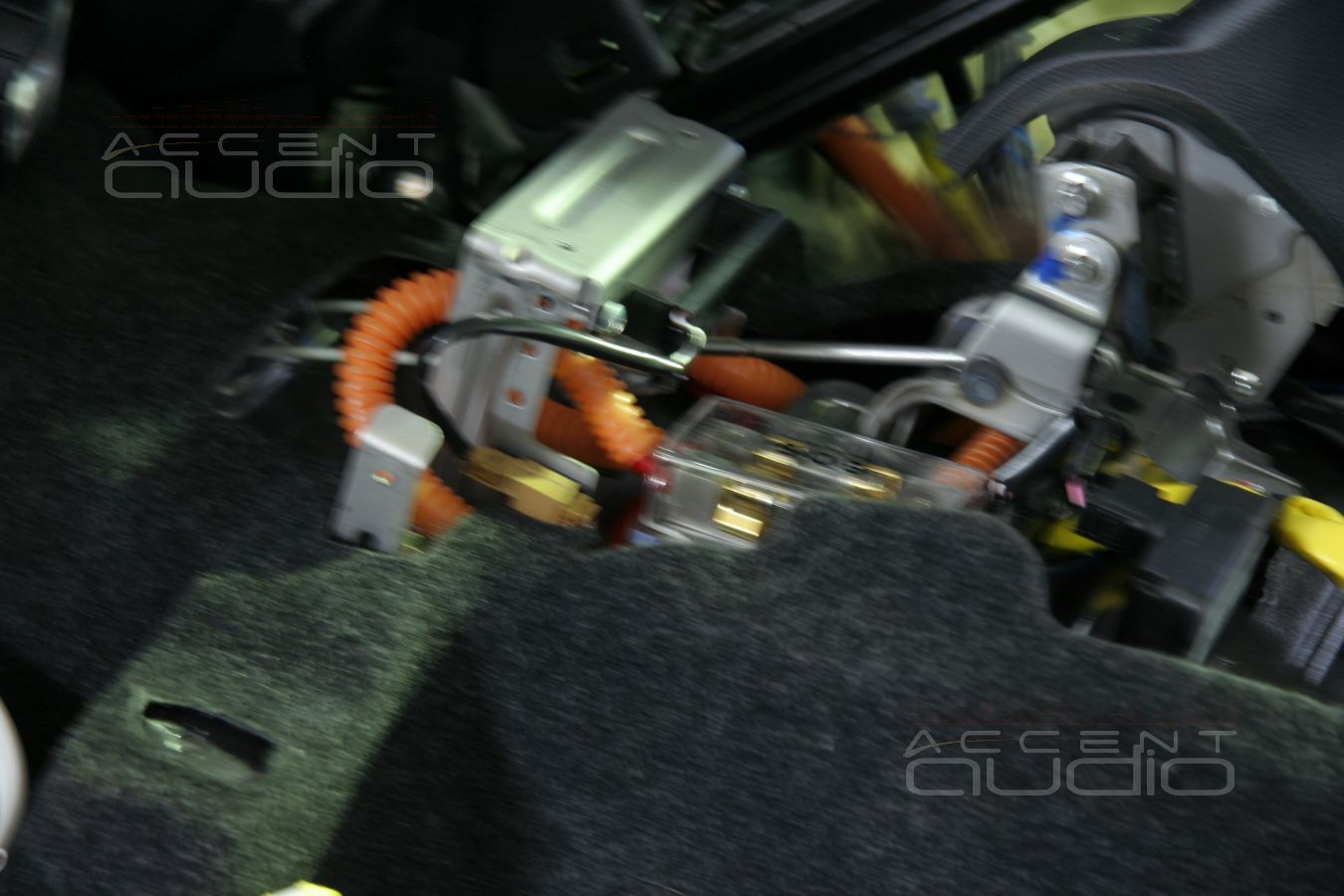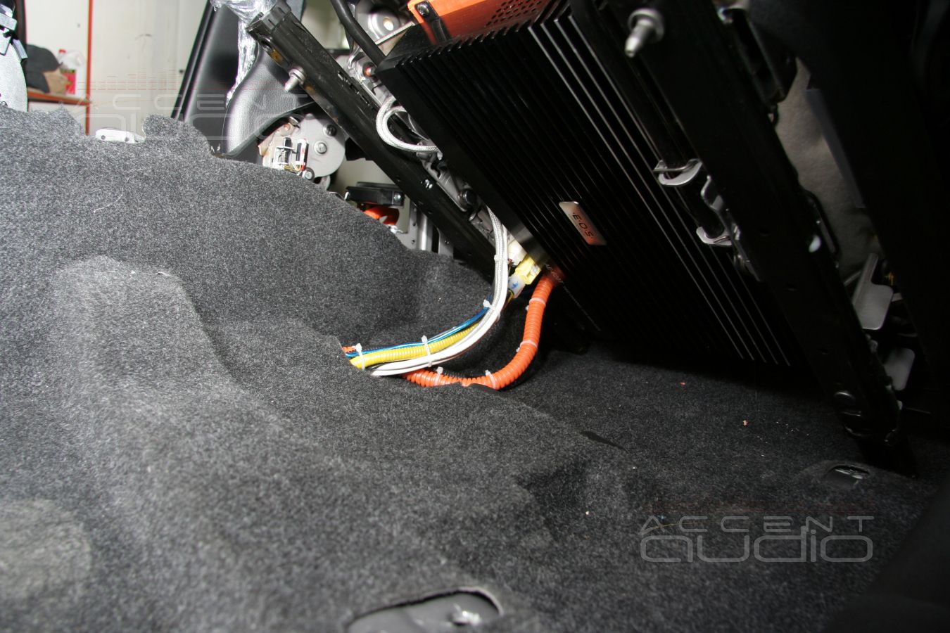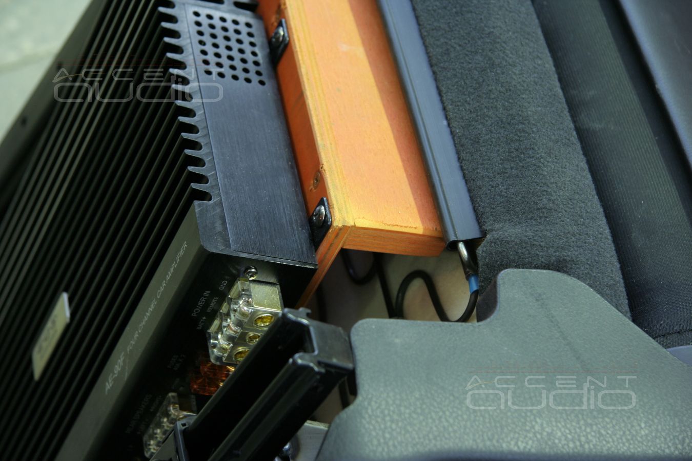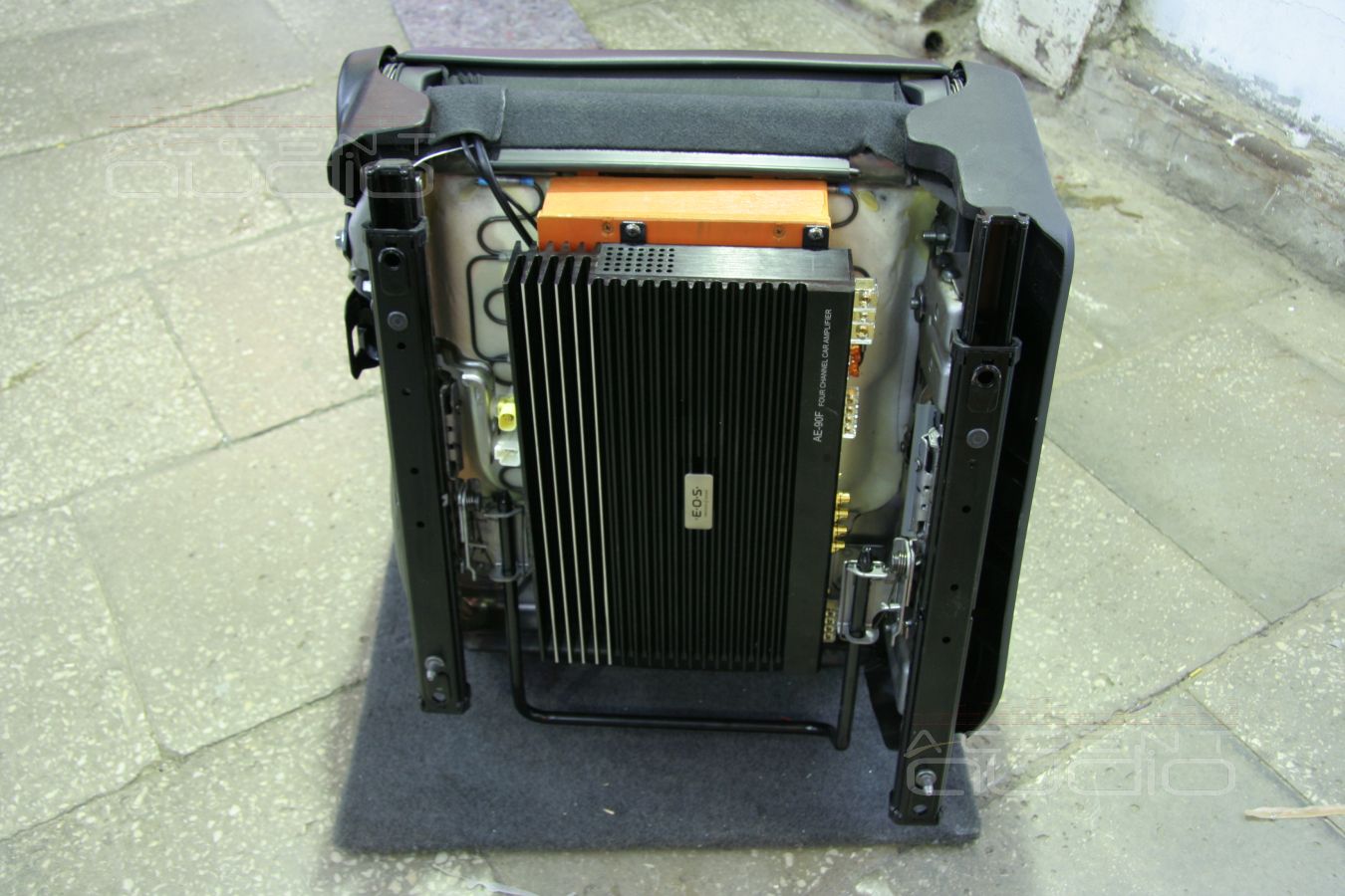 - Усилители E.O.S. AE 90F и E.O.S. AE620T установлены под сидениями, причем так, что не мешают ногам задних пассажиров. а воздуховоды полностью сохранили свой функционал.