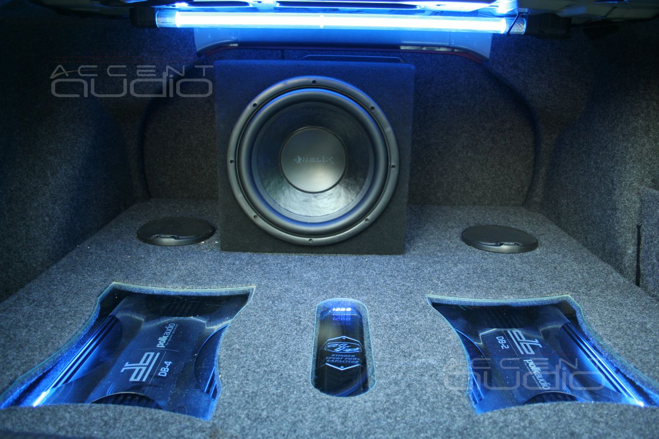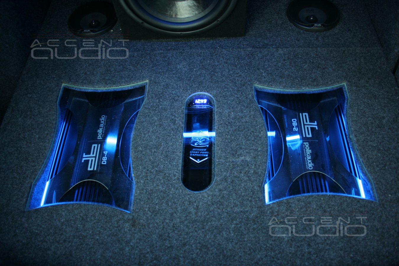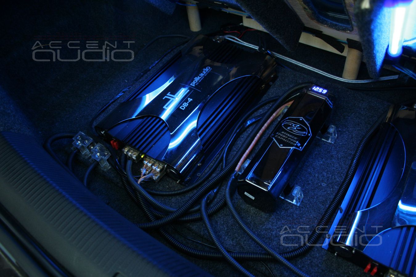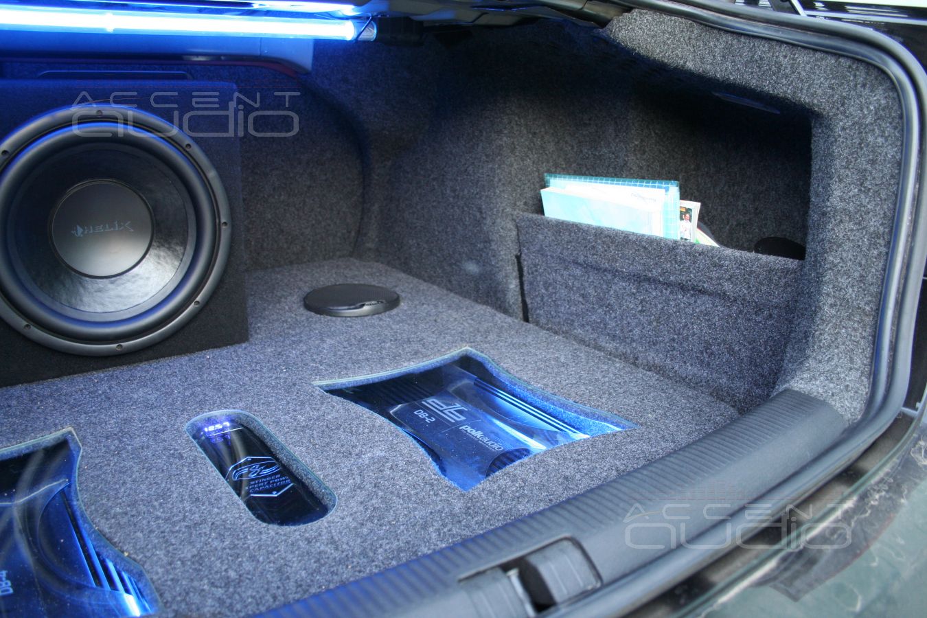 Установка усилителей в багажник заняла 2 дня. Дизайн разрабатывался совместно с клиентом.